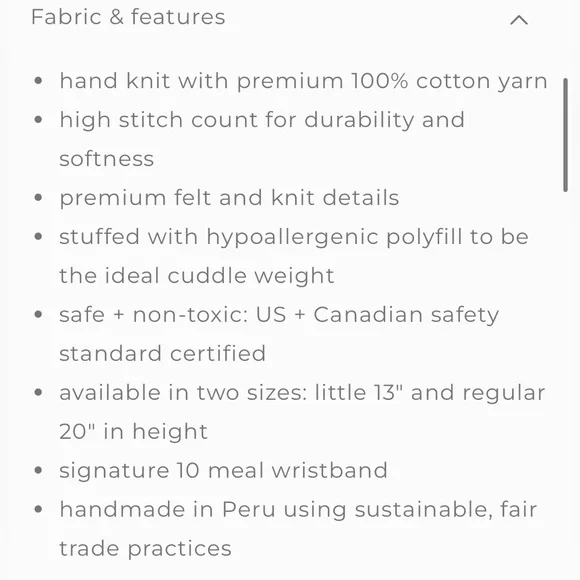 Cuddle and Kind, Lucy the lamb handmade knit doll. 20”, larger size.Well loved, but extra clean, never taken out of the house, never dropped or played with on the ground.