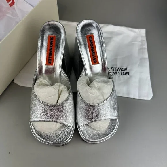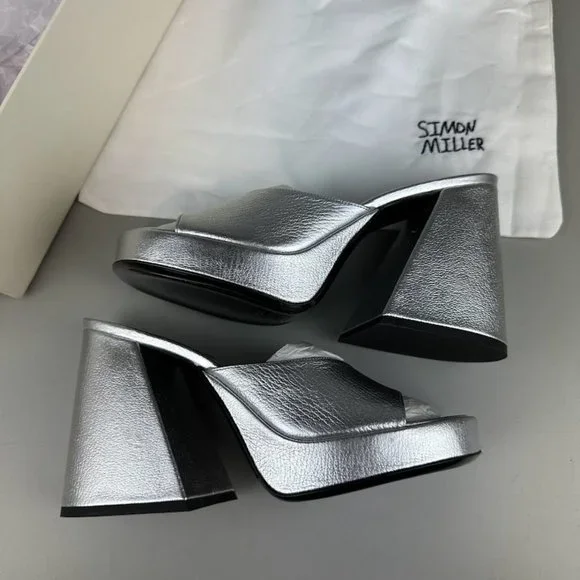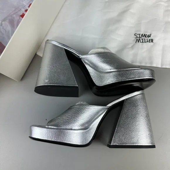 Simon Miller Slice Heel in SilverSize 40Like new, small scuffs to back of heel, comes with box and dust bagFeatures: Going out, date night, fun, silver, trendy, vacation, vacay, summer style, chunky heel, spring, summer, low-heelSize: Womens 40