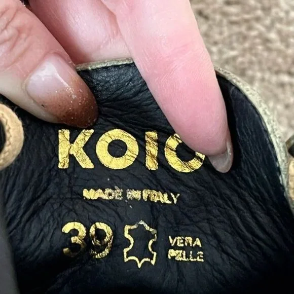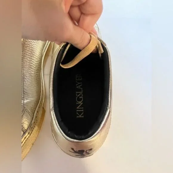 KOIO x Game Of Thrones RARE Limited Edition Kingslay (50 made) Sneaker Size Women´s 39. Excellent condition, some light discoloration in spots (see light marks near toes). Photos show all details. Only 50 of these made and they were raffled off on Insta. A super hard to find pair of shoes.From the brand:When HBO asked us to design a limited edition sneaker for Game of Thrones, we knew we wanted to pay tribute to Jamie Lannister and his golden hand.Jamie embodies the Koio spirit by definitely following his own path time and time again throughout the seasons.The sneaker is currently not available for purchase. We produced 50 sneakers and gave them to 50 lucky winners of our Instagram contest.#gameofthrones