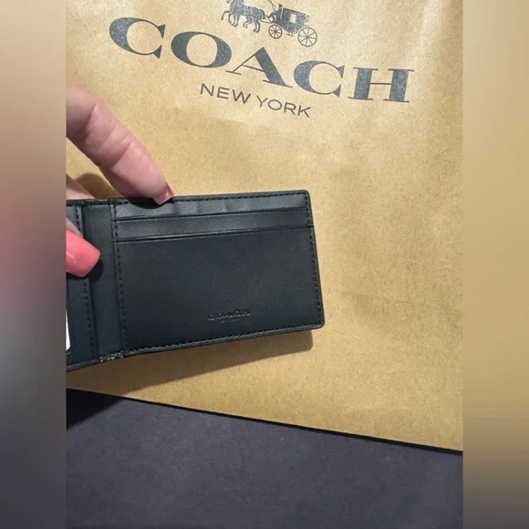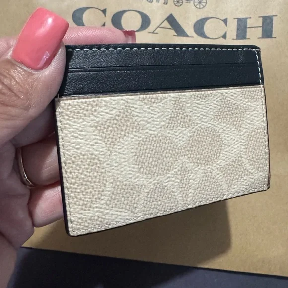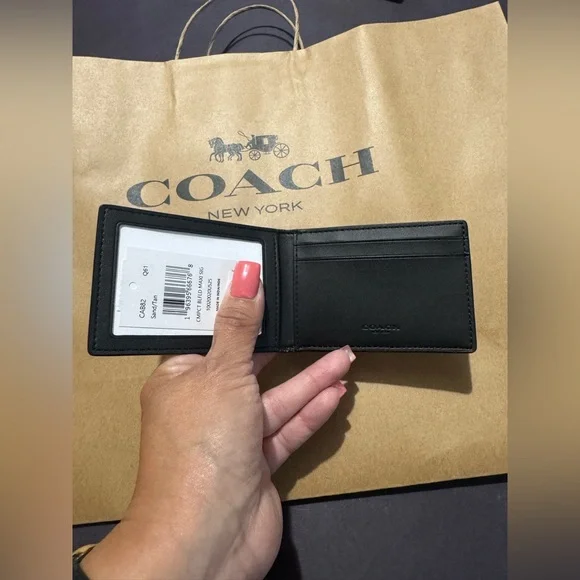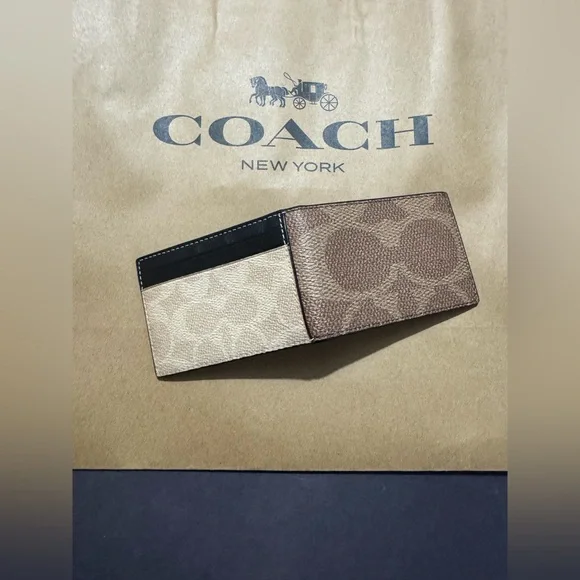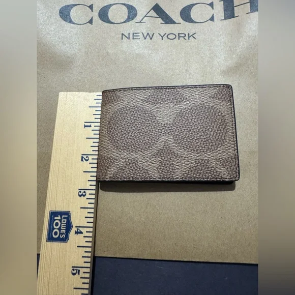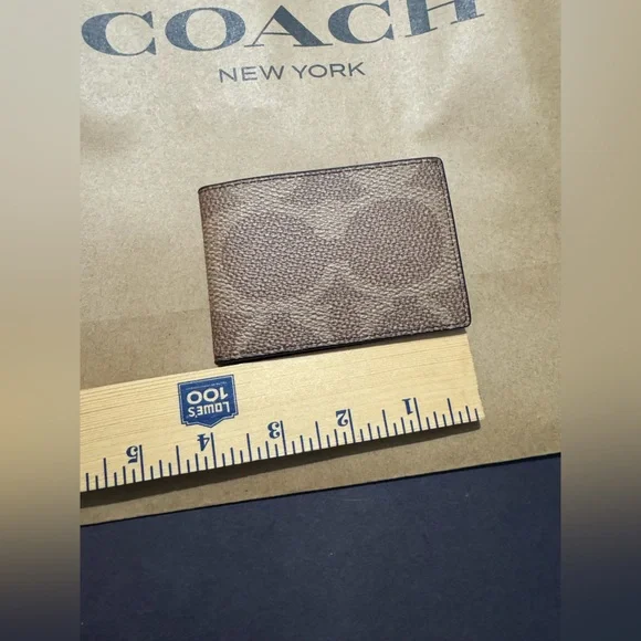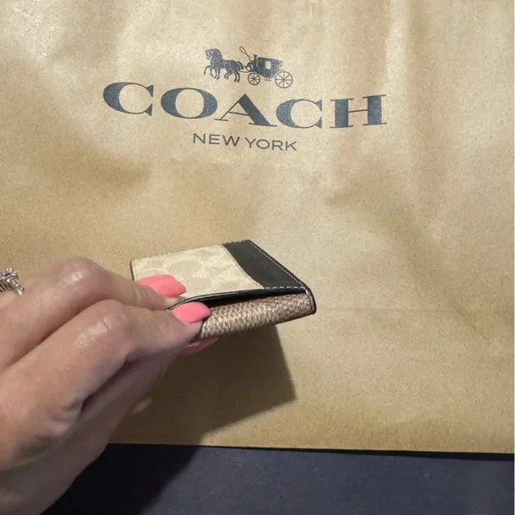 This elegant Coach key and card holder showcases the brand´s iconic style with its signature monogram pattern in a rich brown hue. Crafted for both functionality and fashion, it offers a sophisticated way to organize your essentials. Perfect for those who appreciate timeless accessories with a touch of luxury. Signature coated canvas and smooth calf leather containing multiple spots easily. If it’s in your pocket or bag outside. Open pocket inside. Open pocket to inside credit card slots and two outside credit card slots plus an ID window. Does not come with a box.Length 4.0 inches height 2.75 inches style CAB82#CoachWallet #CoachMen’sWallet #CoachSlimBifoldWallet #Wallet #Men’sAccessories #Accessories #MenAndWomen’sAccessories #CoachToneWallet #DesignerWallet #CoachPurse #CoachHandbag #CoachJewelry #SignatureCoach #SignatureC #CoachCollector #Handbags #Wallets #Purses #Men’s
