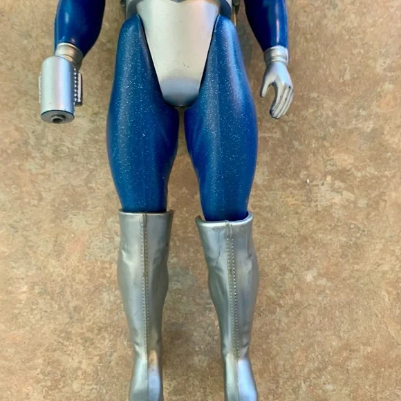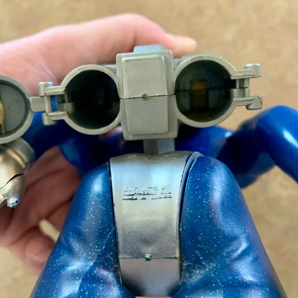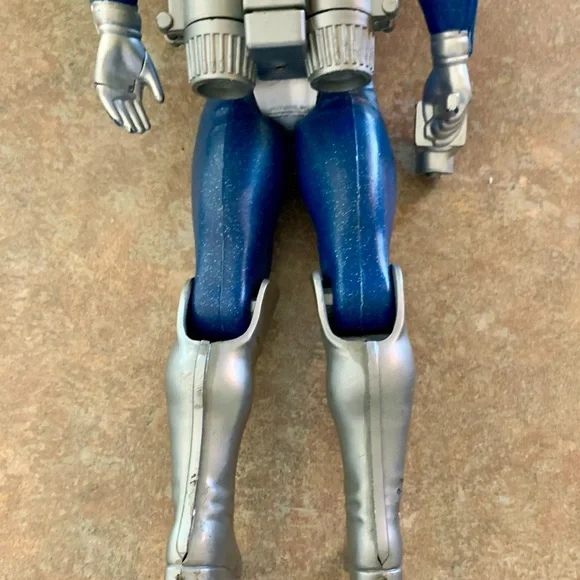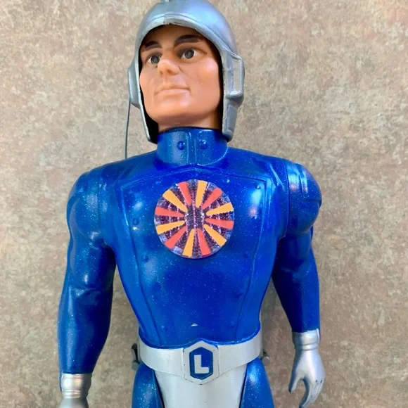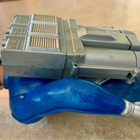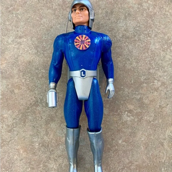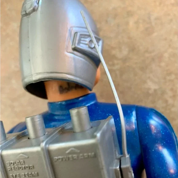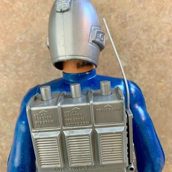 Vintage Major Matt Mason - Captain Lazer Action Figure ToyIncludes helmet (damage on top). All joints still work and attached. Pack buttons still work. No corrosion or issues with battery slots. Name in marker on neck and some left of a name on pack. All pictured.Explore adventures with this blue and silver action figure. Perfect for imaginative play.T2
