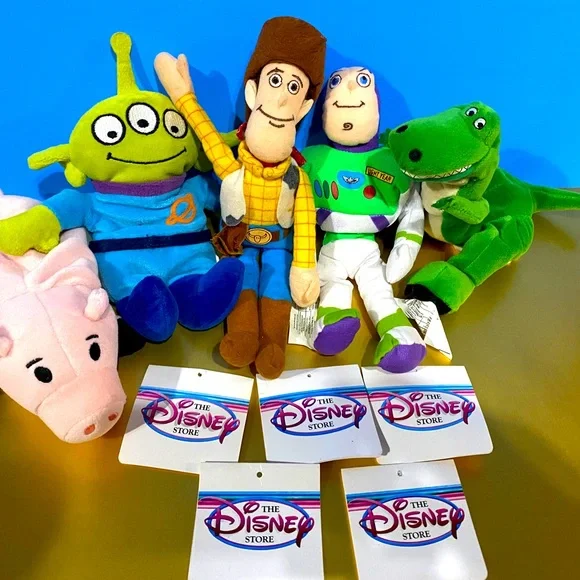 DISNEY STORE NWT VTG 1990s ORIGINAL TOY STORY BEAN BAG PLUSH COMPLETE SET OF 5
