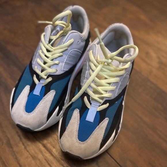 Yeezy Wave Runner 700. WOMEN 9. worn a good amount of times. Brought 4 years ago. Don’t have box, or receipt. JUST SHOES! NO BOX. DO NOT HAVE ANY VERIFICATION FOR THE SHOES