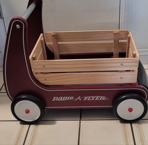 RAdio Flyer for your beginner walker, watc your beginner walker flourish with the classicwalker wagon.theresistpush feature prevents the wagon walker from moving too quickly while yourlittle one masters their one masters their first steps and builds confidence.