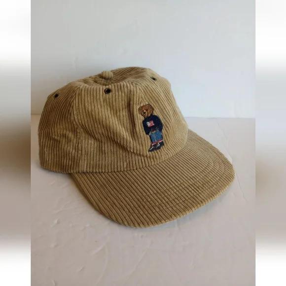 Stylish tanVintage Polo Ralph Lauren corduroy cap featuring a cute bear embroidery. Perfect for casual outings.This hat is in very good pre-owned condition with signs of use and age.Please check out the detailed pictures to see the condition of the item or items I am selling in this listing. I´m a US seller based in Florida . Happy poshing and be sure to check out my other amazing items . Have a great day!