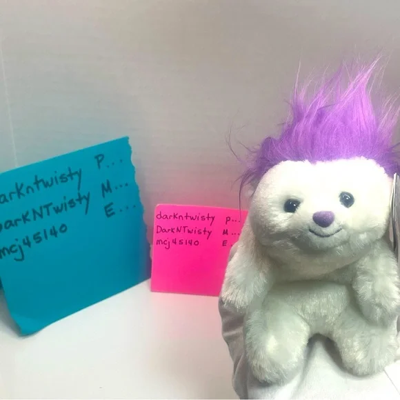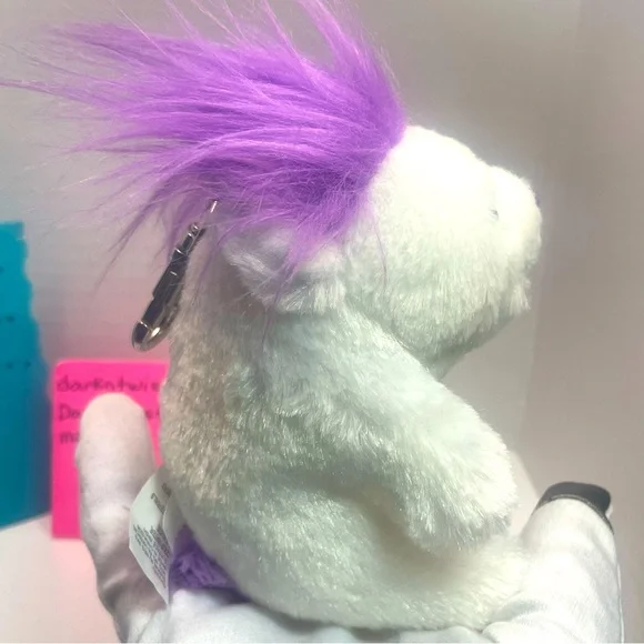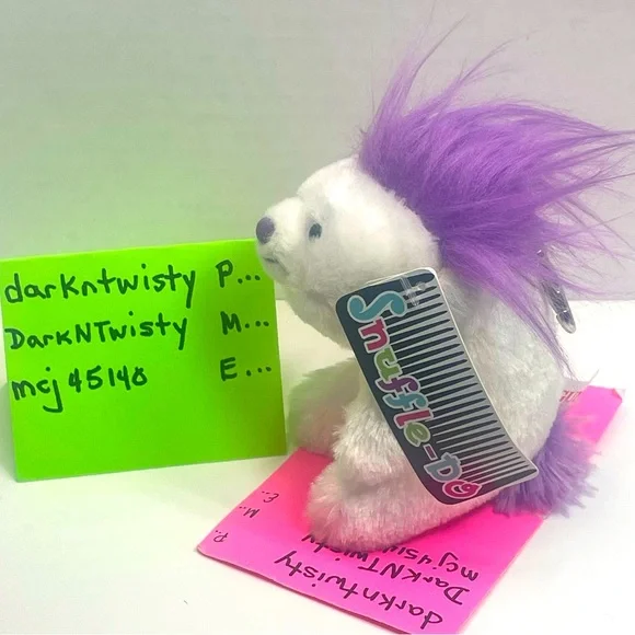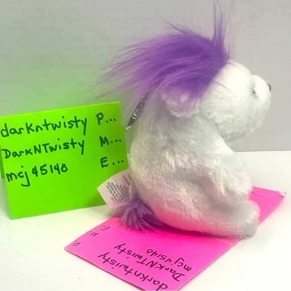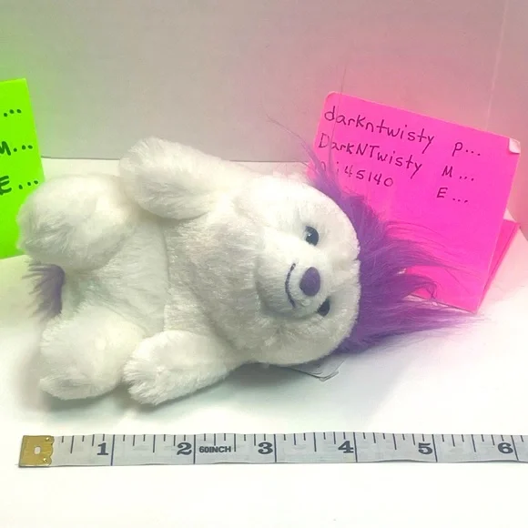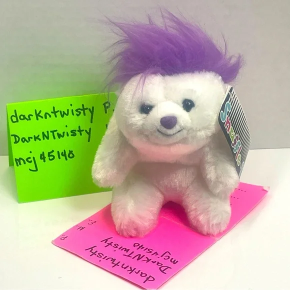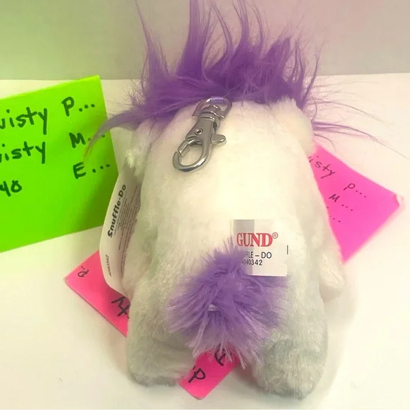 Please do not use any of my pics/text. NO POACHING! Please do not use my listings as your own.Listing for 1 purple hair snuffles only; the one featured in the left side of the last picCOLORS OF SNUFFLES REFLECT DIFFERENTLY WITH DIFFERENT BACKGROUNDS AND FILTERSBNWT PRISTINE! ONE OWNER NEVER THRIFTED. Never Displayed, Never played with.Protectively stored. No obvious visible defects, flaws, or marks. MUCH BRIGHTER WHITE IRL DUE TO INSUFFICIENT DESK LAMP LIGHTPFSF CHILD FREE HOMEAll sizes are approximate only, 4” length. I have 2 of these with different color hair. Each listed and sell separately.**A portion of proceeds from are donated directly to our local food bank.*****We also just donated 107 brand new stuffed animals and toys $1600 to Toys for Tots for holiday distribution! It is against platform etiquette to question a seller’s pricing. Please refrain from doing so. All lowballers and any snarky commenters blocked. EVERY item is videoed extensively prior to, during, and post packaging item Tags: Retired Gund, Snuffles, lil’ snuffles, Gund, ganz, fiesta, aurora, vintage plush, stuffed animals, plush, stuffies, loveys, lovies, nursery, shower gift, trolls, girlfriend gift, valentines plush, Easter Basket filler, squishies, teddy bear, , dorm bed, stocking stuffer, Black Friday,Christmas gift, secret Santa gift, Gund bag charm, plush bag charm, snuffles keychain, troll charm,
