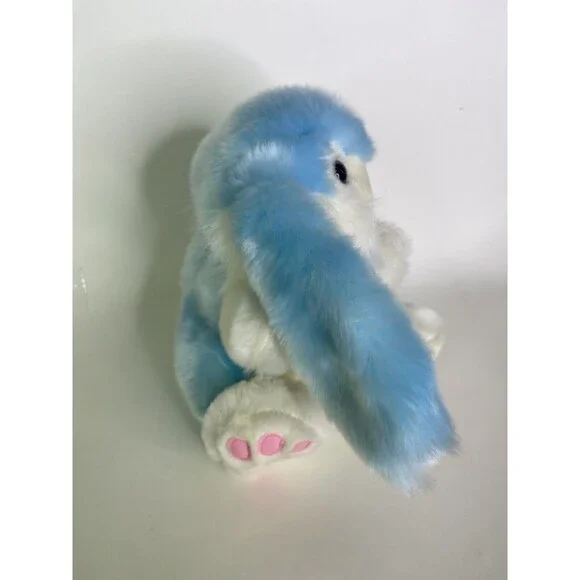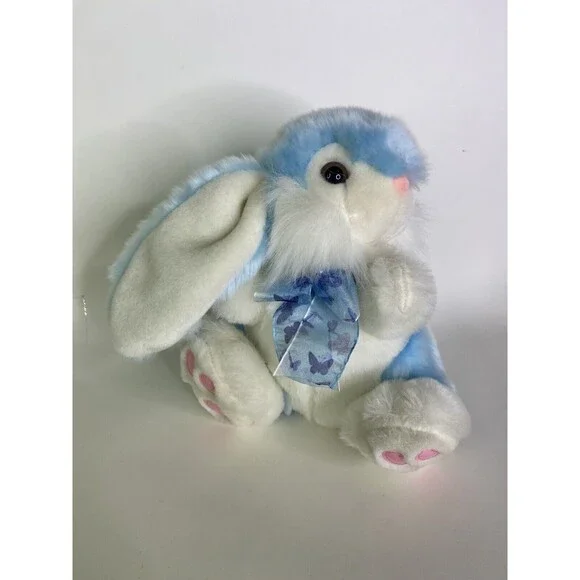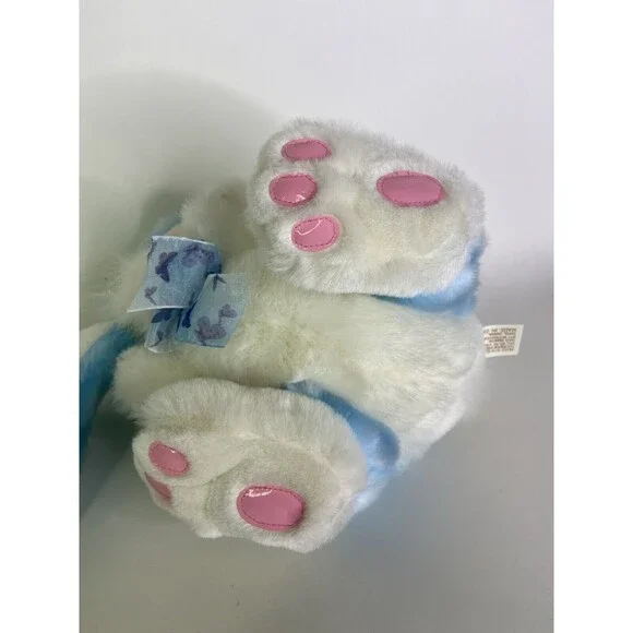 Dan Dee Blue White Bunny Rabbit Plush Stuffed Animal Toy With Pink Paw Print