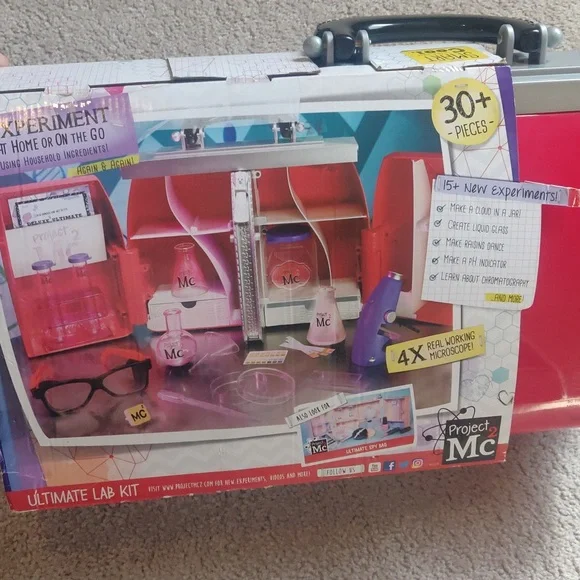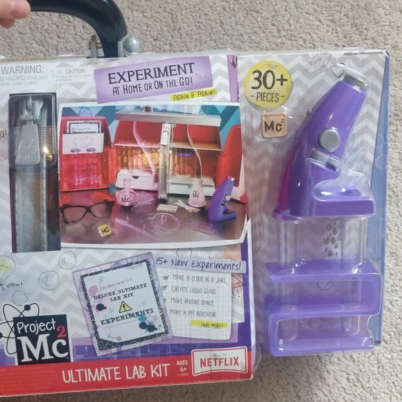 new New Project Mc2 Ultimate Lab Kit with 15+ ExperimentsThe oversized Ultimate Lab Kit allows you to conduct your own experiments at home or on the go, just like the girls from Project Mc2Play with and store all the fun science pieces includedReal working microscope with 4x powerConduct 15+ different experiments from the included booklet or create some of your own!30+ additional pieces