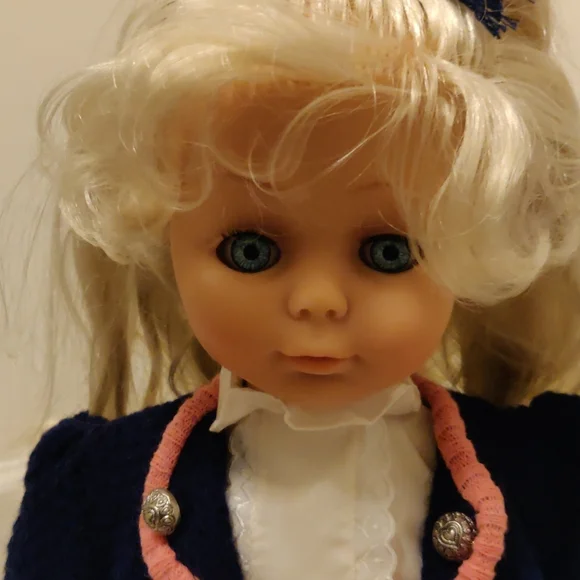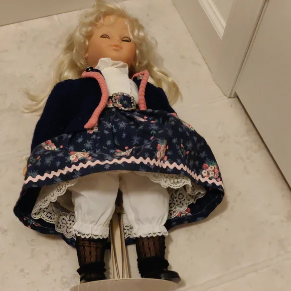 in very good condition.18" Engel Buppe vintage doll with stand, made in western Germany. Has a tag attached (pictured)Sold as it is. no box.refer to pictures as part of...