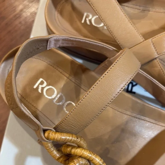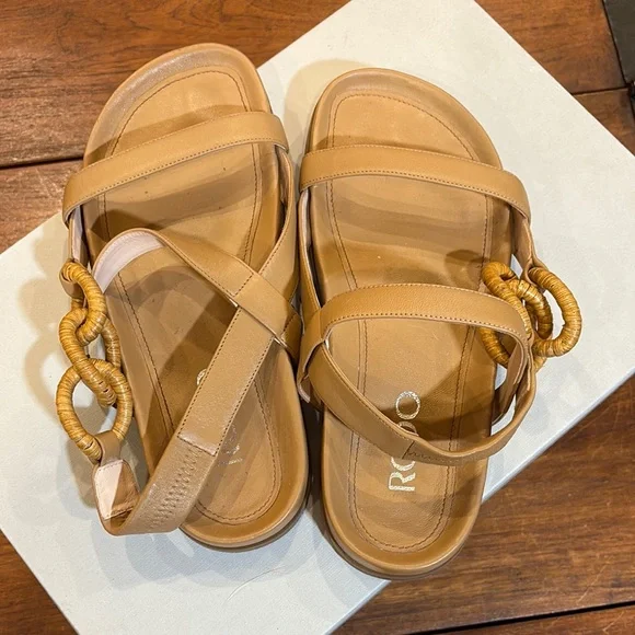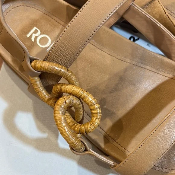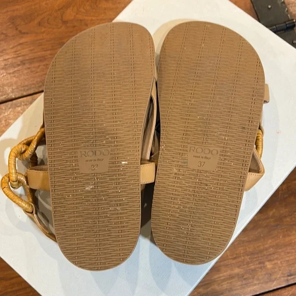 Stylish tan sandals featuring a unique woven detail. Perfect for casual outings.Like new, worn a couple of times only.Made in Italy