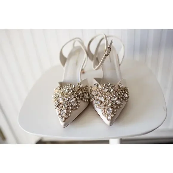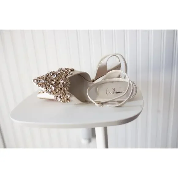 • Vintage inspired appeal• Brand color is Moonbeam• Fabric upper• Leather insole• Leather sole• Heel height: 3”• Made in ItalyNew without the boxSole or Inside brand tag marked to prevent store returnsSize: 7.5Color: ivorySold from Anthropologie