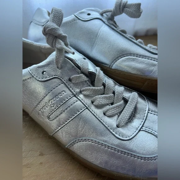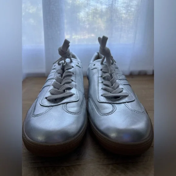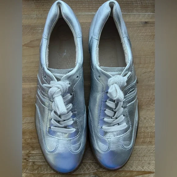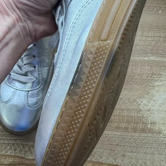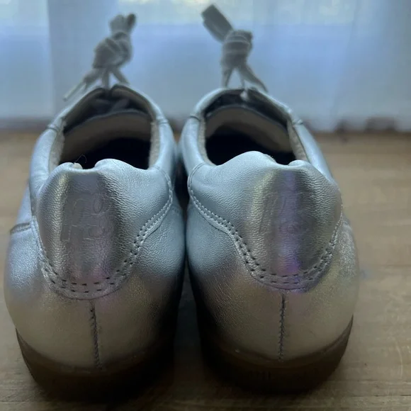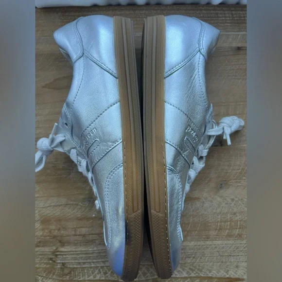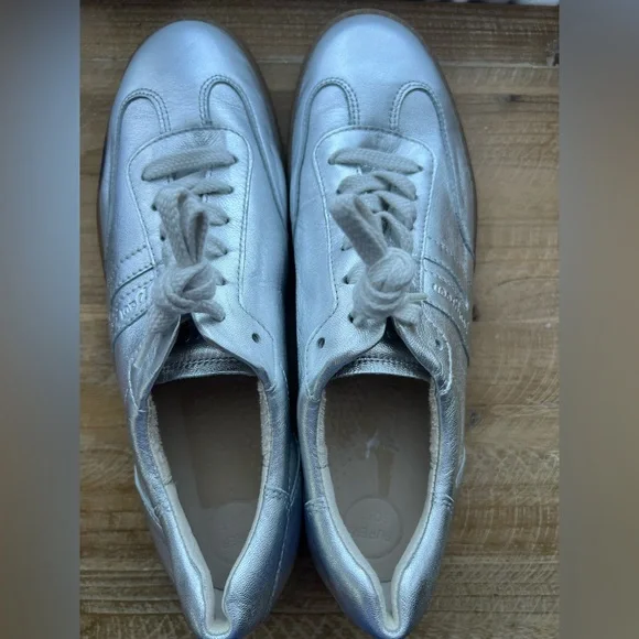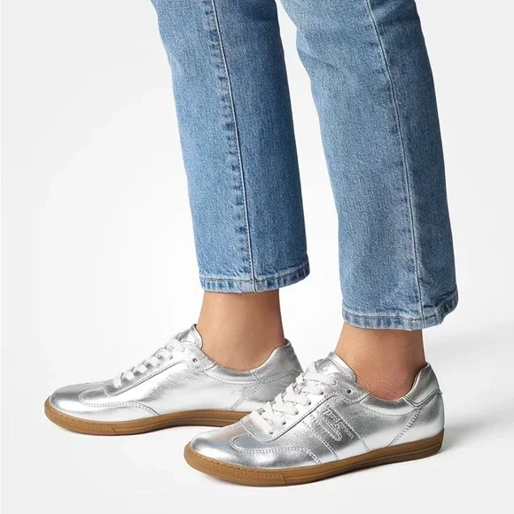 NWOBFollowing a retro silhouette, the Paul Green Anna women´s trainers are a comfortable and trendy pair for casual wear.With soft leather linings and flexible outsole, the Anna are sure to become your new go-to.Product Information-• Uppers: Leather• Lining: Leather• Sole: Rubber• Fitting: Standard• Heel Height: 1.5cm• Fastening: LacesPlease notes small color darkened spot to sole on bottom and topItem is considered new condition, but has previously been in a retail or warehouse environment and may show signs of use, light wear, or being tried on. Item may have slight imperfections such as rubs, color rubs, nicks, scratches, creasing, etc. Please review photos. Tags: retro, metallic, wear with jeans shorts or dresses, sparkle, unique, every day comfort