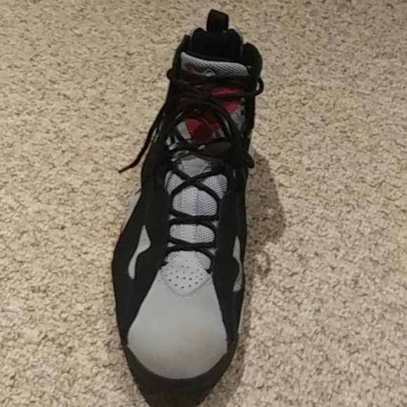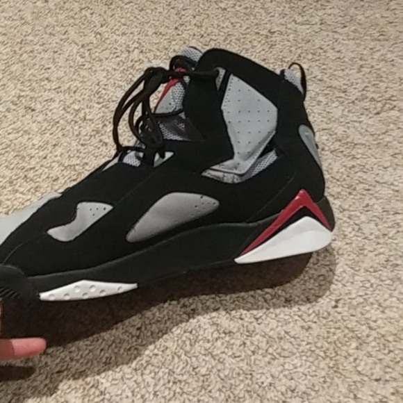 Very nice and barely worn grey and black Air Jordan 7s with red jumpman logo, (BOX INCLUDED)