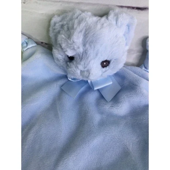 Bearington Baby Collection Blue Bear Plush Knotty Lovey Security Blanket Bow