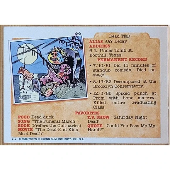 AUTHENTIC CARD. SEE PICTURES FOR ERROR(S)1986 TOPPS GARBAGE PAIL KIDS SURREAL NEAL 196B WHITE CIRCLE IN NAME PLATE ERRORALL CARDS ARE SHIPPED SECURELY IN PADDED PACKAGING. PLEASE REVIEW ALL PROVIDED PICTURES FOR CONDITION INQUIRES. SEE THE TREAZUREISLAND1 STORE FOR MORE GREAT DEALS! DON´T FORGOT TO FOLLOW US TO BE ALERTED WHEN MORE ITEMS ARE LISTED.