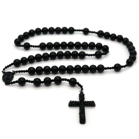 Jesus Cross Black 15mm Beads and Guadalupe!!