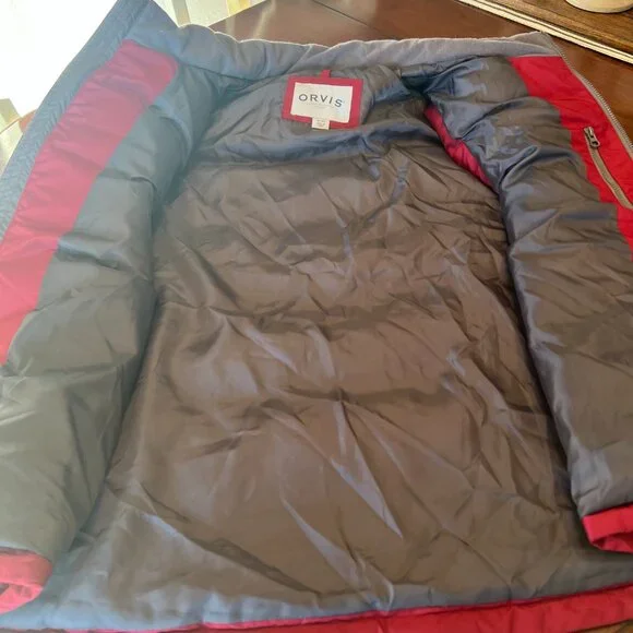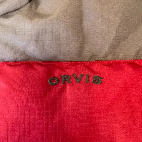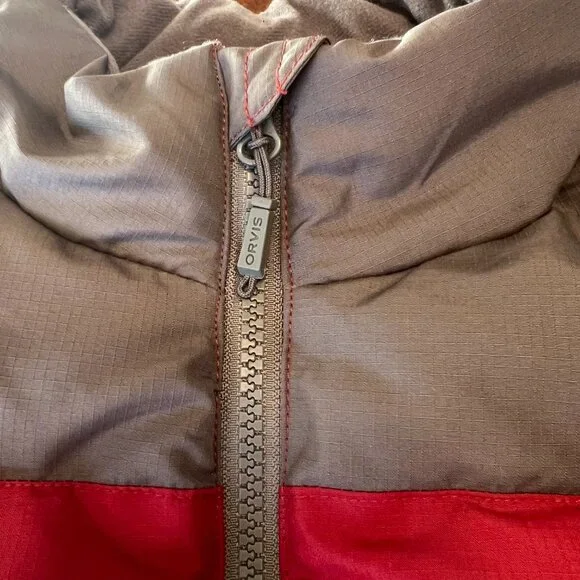 Orvis Mens XL Full Zip Ripstop Quilted Puffer Vest Utility Outdoor Red & Gray
