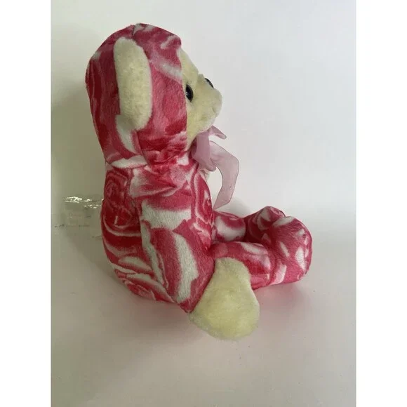 Kellytoy Roses Floral Teddy Bear Pink Plush Stuffed Animal Toy 2003