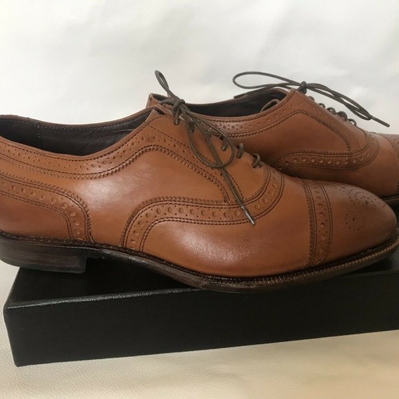 These stunning Allen Edmond Barlett in walnut (size 9 3e) are part of the AE Independence Collectionutilizing leathers that vastly exceed the normal AE calf and lambskins that are simply buttery soft. They are new in box, come with the upgraded AE box and shoe bags. If you´ve been looking for Strands these are simply an upgraded version built on the 201 last which is generally considered more comfortable for most people.