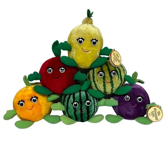 Woodland Bear Company Lot Of 6 Plush Fruit Stuffed Toys Apple-Grape-Lemon-Orange-MelonsYou will receive Six (6) Plush figuresApprox 10"Condition is Vintage-Preowned in Very Good...