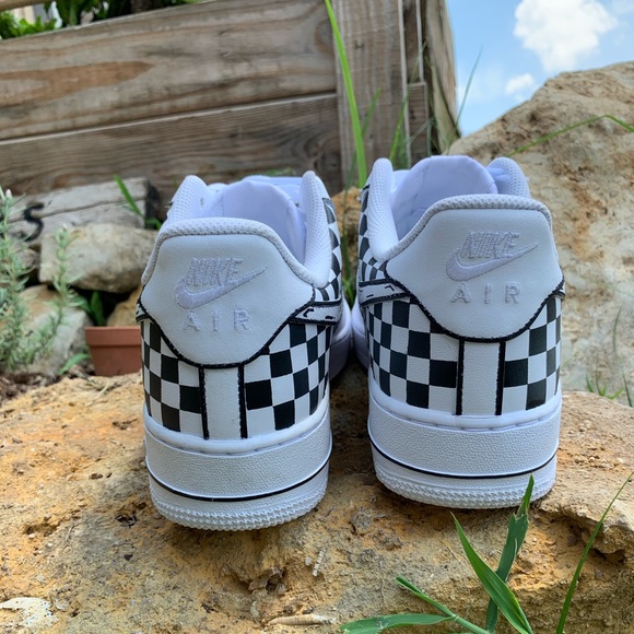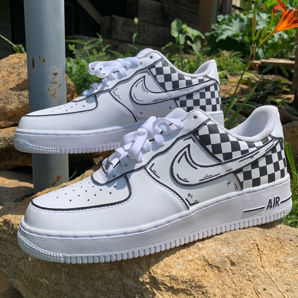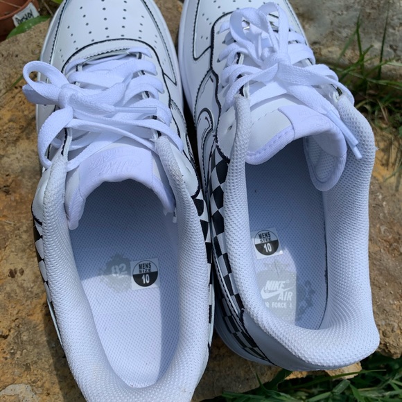 Checkered airforce one custom double coated in a protective matte finish spray to keep the design in tact with wear. Men’s size 10. Comes brand new in box.