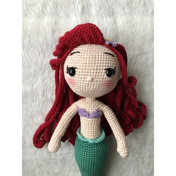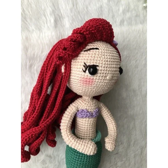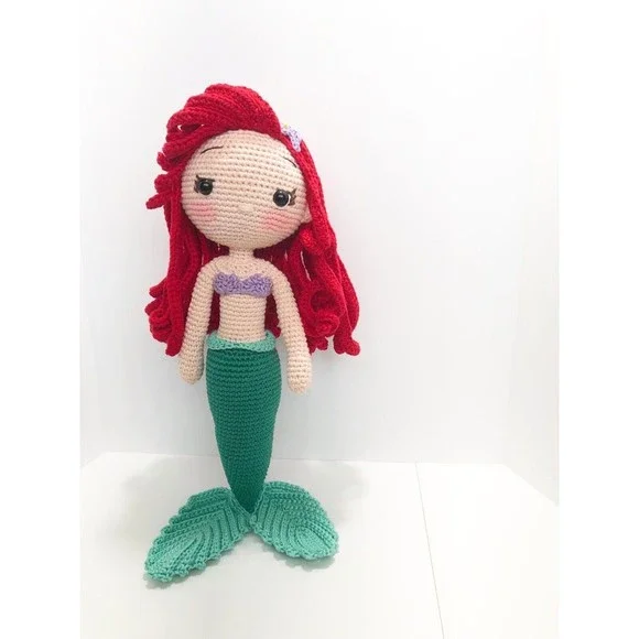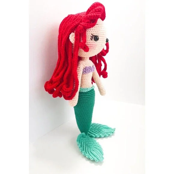 Ariel is made with love and care. Every details such us clothing which makes our doll original and and different from mass produced products. Excellent gift for baby showers, new born, birthdays, baptism, presentation, and more... -Handmade with love and care -100% cotton yarn(hypoallergenic) -Ariel is made with cotton yarn and stuffed whit fiberfill -The doll hands are flexible -Ariels clothes aren´t removable -The doll is 12" the size is measured from the tip to her tail. The perfect gift!! Thank you for visiting my little store.