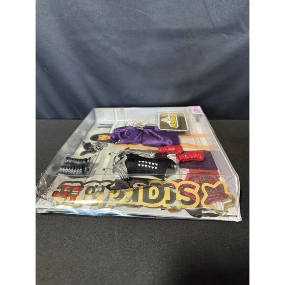 2011 Mattel Stardoll CollectionFallen Angel Fashion PackThis edgy and rare fashion pack features a dark, glam look with gothic-punk flair, straight from the Stardoll virtual world. Originally made for Stardoll by Barbie dolls, this piece is perfect for collectors or fashion-forward display. Details:* From the Fallen Angel Stardoll clothing line* Open box, dented plawstic upper left corneroutfit and accessories are new and still secured inside* Outfit includes dramatic black and red details with punk rock vibes* Discontinued and hard to find!A standout addition to any Barbie or Stardoll collection, especially for fans of alternative or emo doll fashion from the 2010s.----------------------------------------barbie stardoll fallen angel fashion pack 2011 mattel gothic punk emo rock doll clothes alt outfit rare collectible y2k