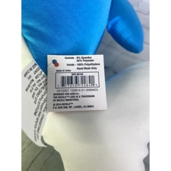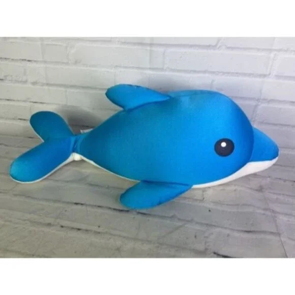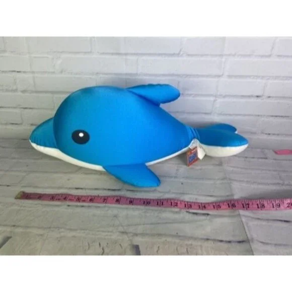 Up for grabs is a preowned Nicole Pillow Buddy Dolphin Stuffed Plush Animal Toy Blue White 2014. The stuffing inside is beads! Will come exactly as shown! Clean overall with small flaw on the side of the face noted in photos! No holes or tears. Original tag attached! Measurements Laying flat are included in photos! Please refer to all photos. Ask any questions prior to purchasing. Thanks!