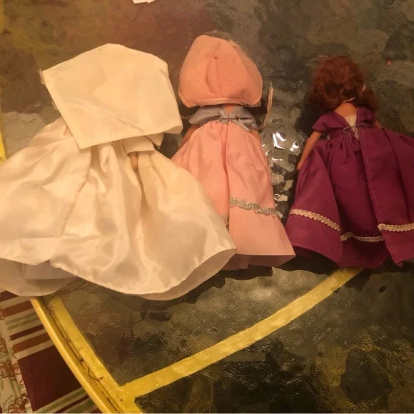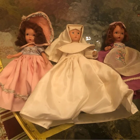 Antique three story book dolls when is a nun there from the 1940s or 1950s. The doll on the right has a crack in her face. The other dolls are in used vintage condition. Please note to the screen resolution lighting and the device you’re viewing it on color May vary