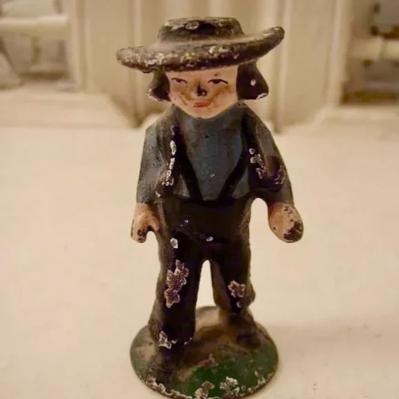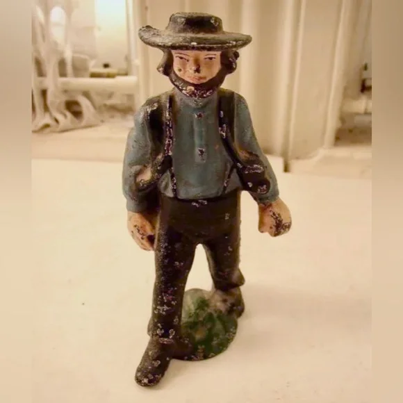 Vintage, Rare, 3-pc Cast Iron Amish Family(J0225)This is a rare 3-pc Cast Iron Amish family.Measurement of each is as follows:Father5” H, 2.5” WMother5” H, 2” WSon2.75”...