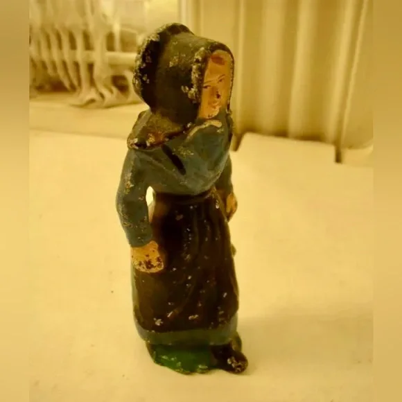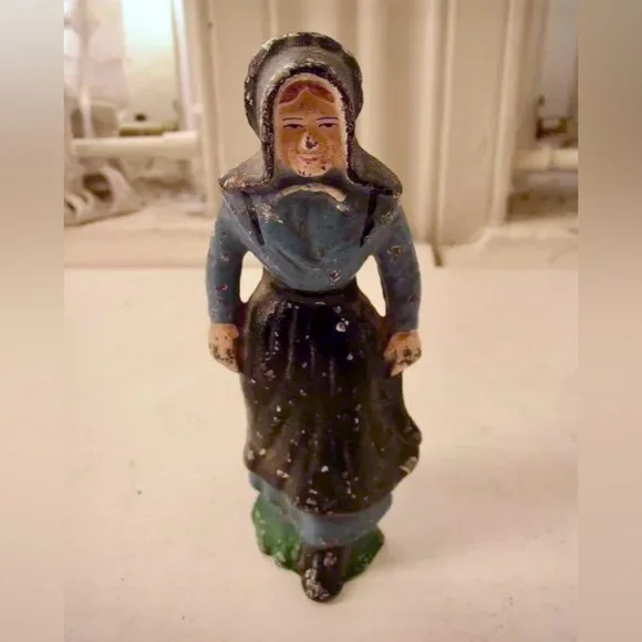 Vintage, Rare, 3-pc Cast Iron Amish Family(J0225)This is a rare 3-pc Cast Iron Amish family.Measurement of each is as follows:Father5” H, 2.5” WMother5” H, 2” WSon2.75” H, 1.5” WThis set is in good condition, with normal age wear such as dings or enamel loss, etc. as shown in photos.