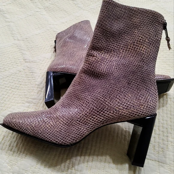 Step out in style with these elegant textured ankle boots. Perfect for any occasion, these boots feature a sophisticated design and a comfortable fit. The unique pattern adds a touch of flair to your outfit.Excellent Condition Like New