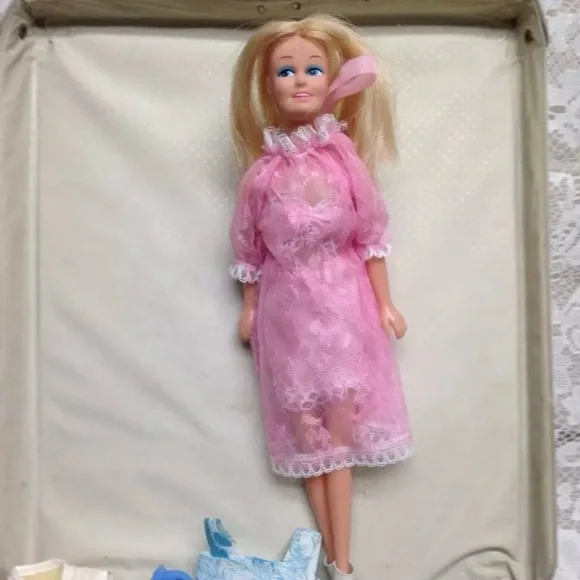 1963 Vintage Blue Vinyl Midge - Barbies Best Friend Carrying Case with 11in Doll with Wardrobe (J0225)This is a beautiful carrying case with a rare but imitation Midge doll, Hong...