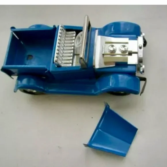 Vintage, 1940-50s Made in Japan, Blue-Silver Tin Jeep-Topper (L)