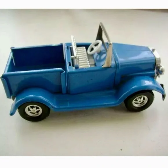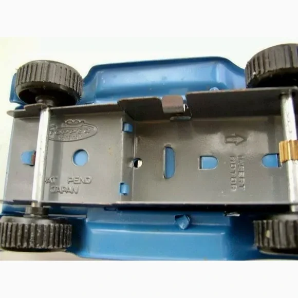 Vintage, 1940-50s Made in Japan, Blue-Silver Tin Jeep-Topper (L) This is a beautiful jeep made of tin and lithograph in blue and silver. It measures 2.5 inches high, 5 inches long and 2.75 inches wide. It is pretty much in good shape as shown in photos, probably some missing parts so please look closely. It is marked: Topper, Patent Pending Japan.