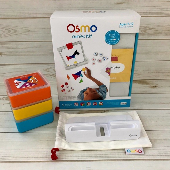 This has only been used a couple of times. Mint condition. It includes Osmo base, stackable storage, storage bag, 5 Osmo game Apps, and game pieces for Apps.