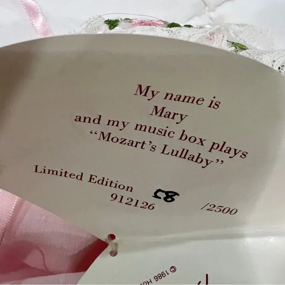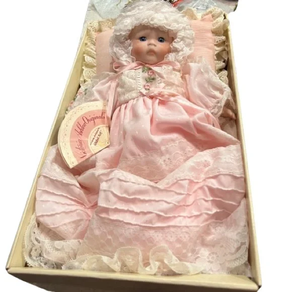 Vintage Victoria Ashlea Original Porcelain Baby Doll Limited Edition Musical 11”Limited Edition #58/2500Baby Mary music box plays “Mozart’s Lullaby”Vintage 1986 comes with...
