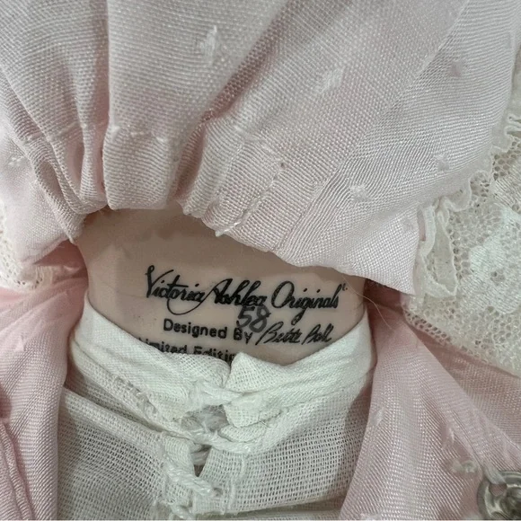 Vintage Victoria Ashlea Original Porcelain Baby Doll Limited Edition Musical 11”Limited Edition #58/2500Baby Mary music box plays “Mozart’s Lullaby”Vintage 1986 comes with box & tagExcellent condition - box has been taped