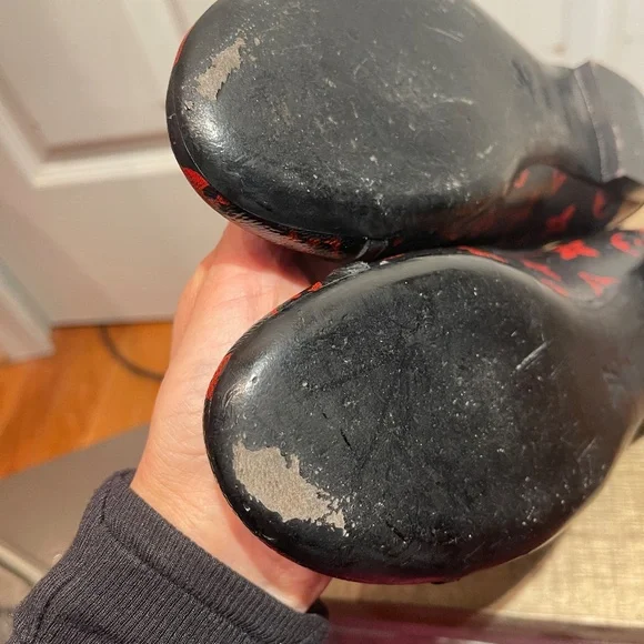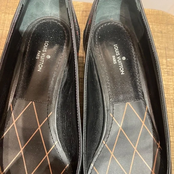 Elevate your shoe game with these rare black and red monogram revival ballerina flats by Louis Vuitton. Crafted from high-quality leather in Italy, these flats are a must-have for any fashion-forward woman. The colorful theme adds a playful touch to the classic ballet style, making them perfect for both casual and formal occasions.These flats come in a US shoe size of 6.5 and an EU shoe size of 36.5. The brand, year of manufacture, and country of origin are all top-notch, ensuring a premium product. Make a statement with these designer flats that are sure to turn heads.Preowned, good condition. worn a few times.minor wear on sole. no scuffs or tears on upper. RUNS SMALL. made in italy. Style MA0115