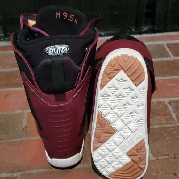 Color Maroon/Black/White. True half size. Light weight cushion with STI Evolution Foam. Heating foot molding. Molded footbed with heel cradle and arch support. 3D Molded Tongue. Standard height with medium support, high flexibility and heel hold. Traditional lacing medium flex. Side heel adjustment rings included. Boot choice of Chris Bradshaw.