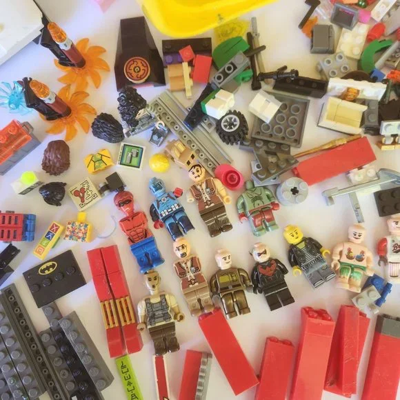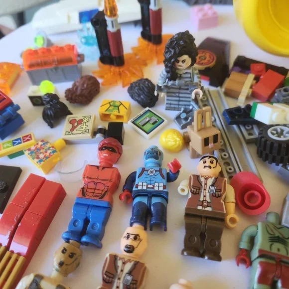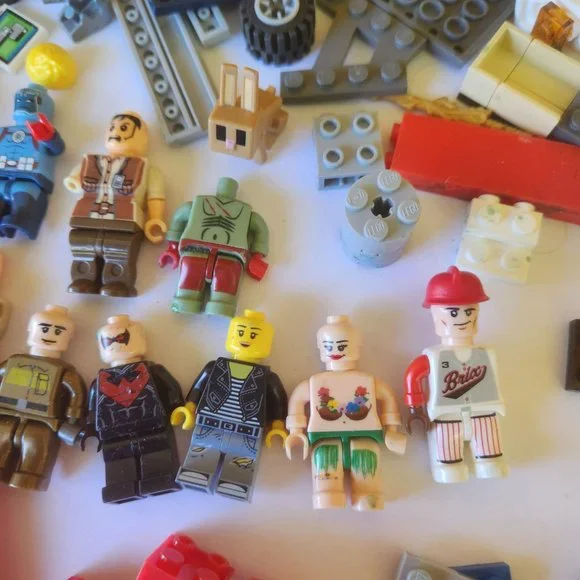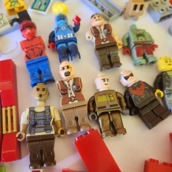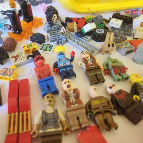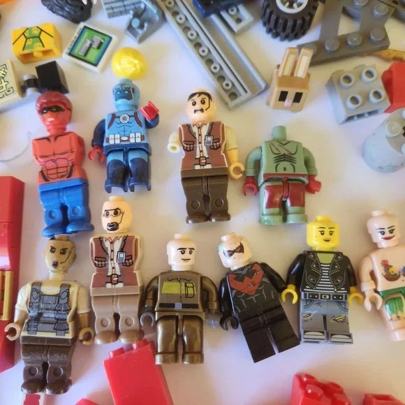 Bulk lot of assorted minifigures with assorted parts and accessories.