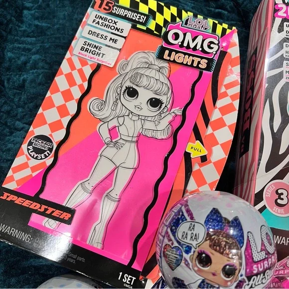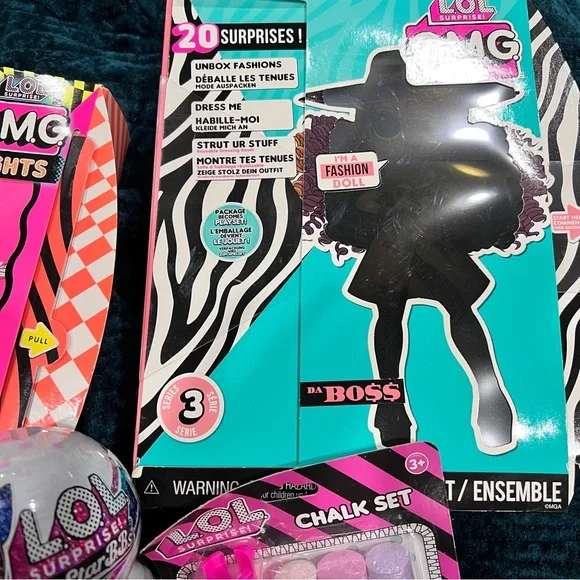 Bundle includes all new in package-lol surprise omg lights dolllol surprise omg outrageous millennial girls4 lol surprise all-star b.b.s lol surprise hair goalslol chalk set