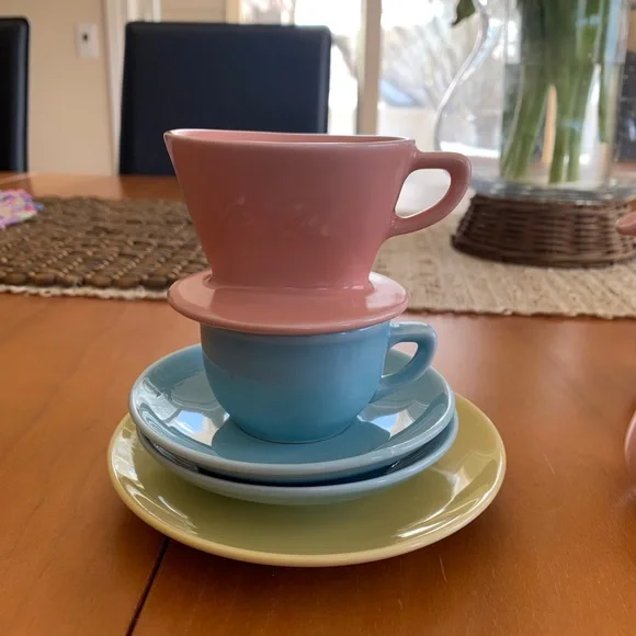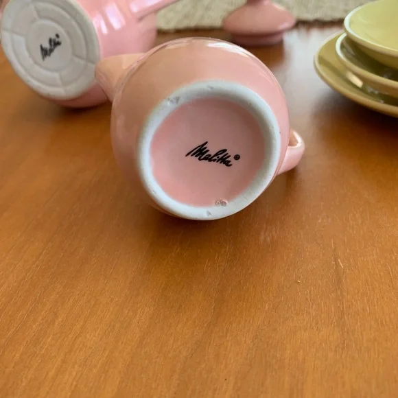 Vintage Childs Melitta coffee set cream sugar, plates, cups filter, pastel 15 PC
