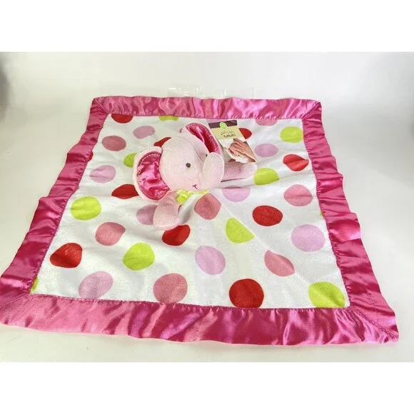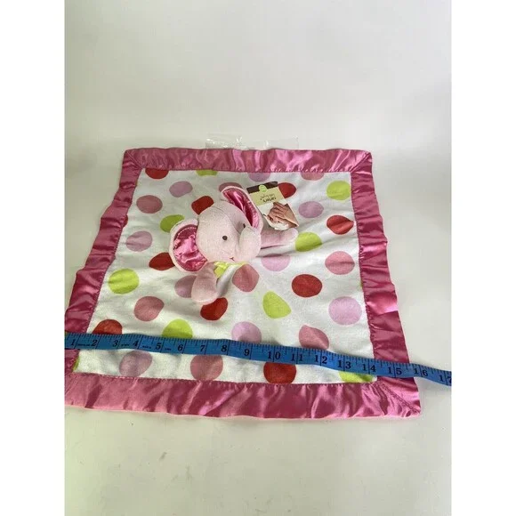 Carters Pink Elephant Lovey Rattle Blanket Polka Dot Spot Plush Satin Trim