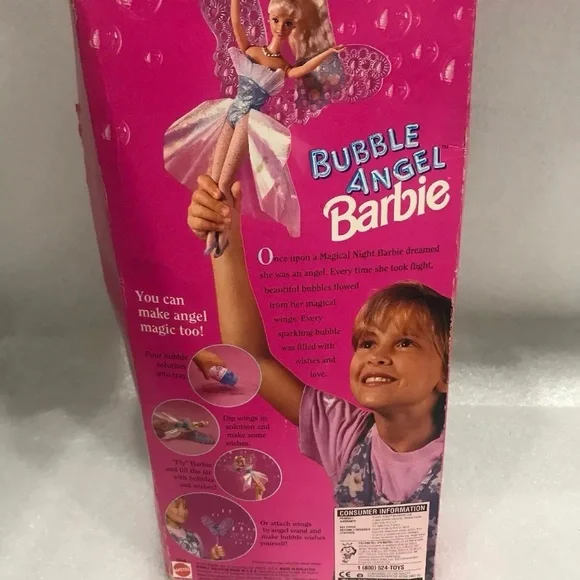 Beautiful Barbie Bubble Angel doll. Features iridescent wings and a sparkling outfit. Perfect for collectors.