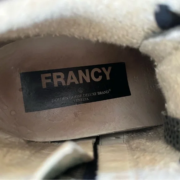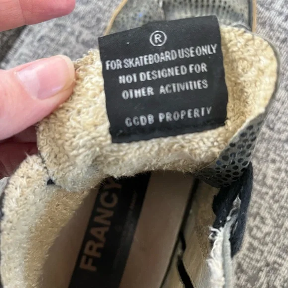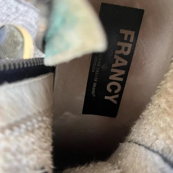 Golden Goose Francy size 39/9 in Gray-Dark Teal/Gold Pattern Sneaker.Good condition. Rare color/pattern.