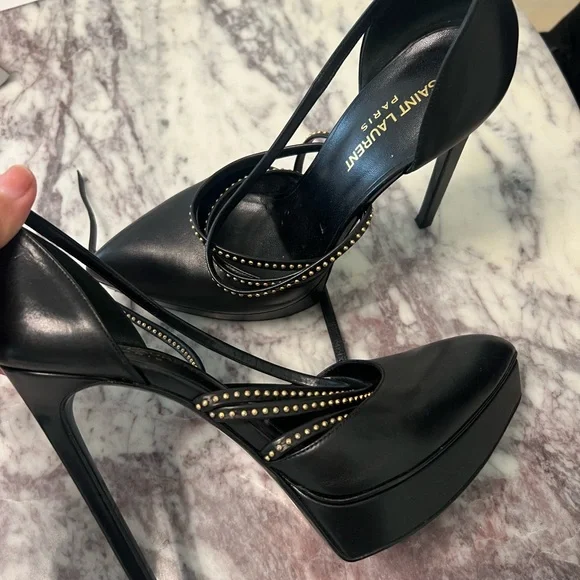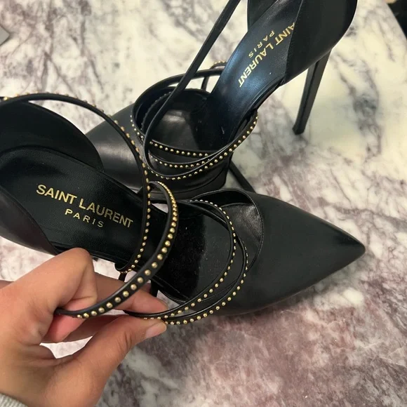 Saint Laurent Black Stiletto Heels with Strappy Design