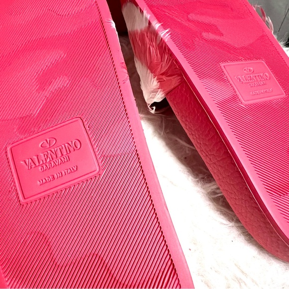 Valentino Garavani slide sandal with feathers -Anatomical molded rubber insole -Outsole embellished with Camouflage motif -Made in Italy-True to size-Color:Shadow pink/Light...