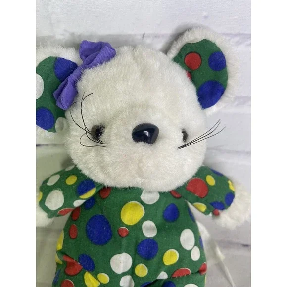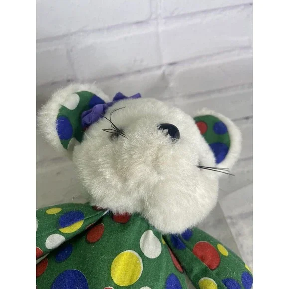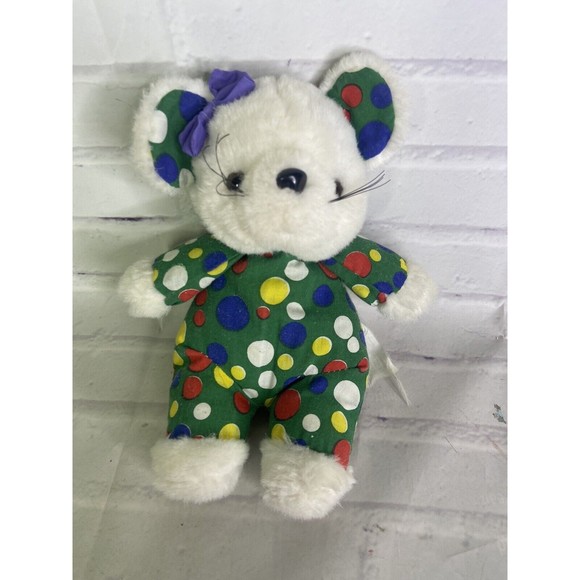 Up for grabs is a preowned Vintage Ace Novelty Mouse Plush Stuffed Animal Polka Dots Circles Bow White Green Blue Yellow Red. Will come EXACTLY as shown! Clean overall! No holes...