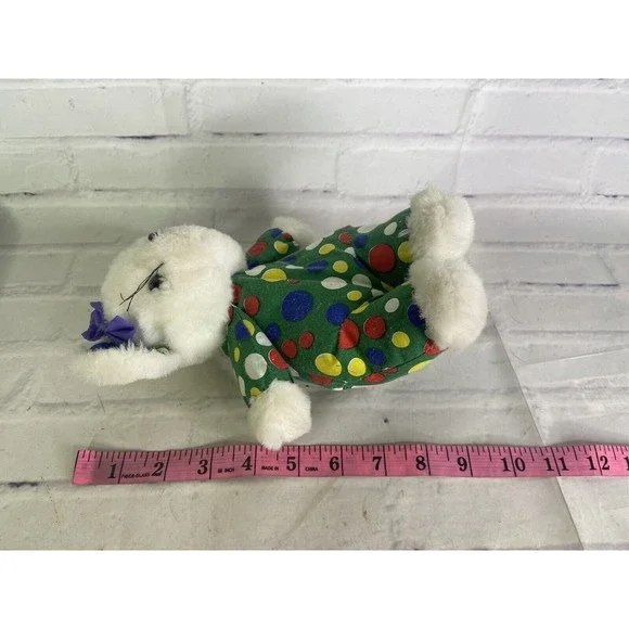 VTG Ace Novelty Mouse Plush Stuffed Animal Polka Dots Circles Bow White Green
